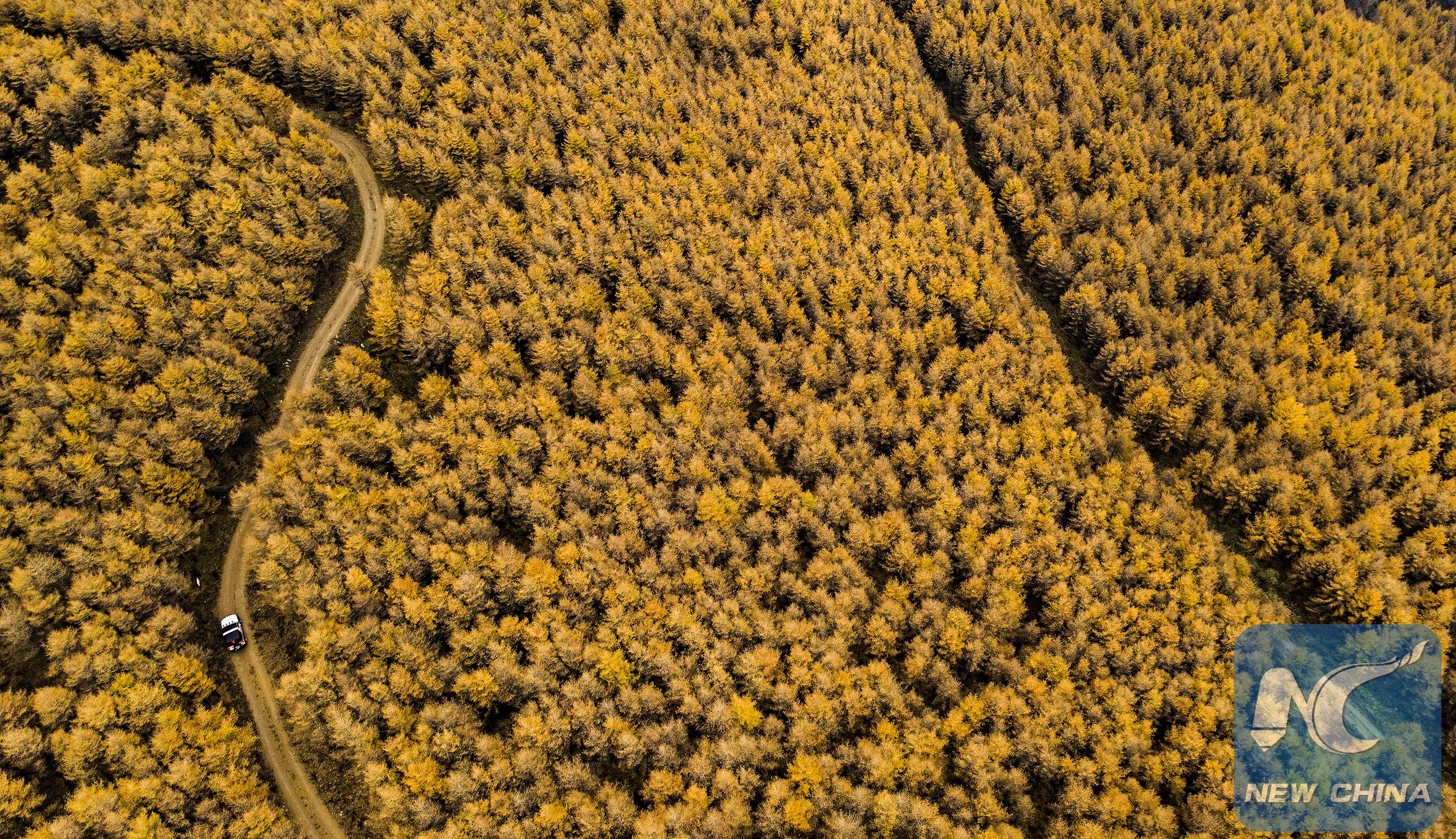 Aerial photo taken on Oct. 8, 2018 shows the autumn scenery of the Haodifang forest farm in Qinyuan County, north China's Shanxi Province. Forest coverage rate of the Haodifang forest farm has reached 98 percent due to farm staff members' constant efforts in tree planting and protection. (Xinhua/Tao Ming)