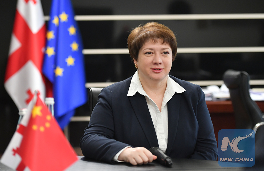 Georgian Deputy Prime Minister Maya Tskitishvili receives an exclusive interview with Xinhua correspondent in Tbilisi, Georgia,on April 22,2019. (Xinhua/Tamuna Kulumbegashvili)
