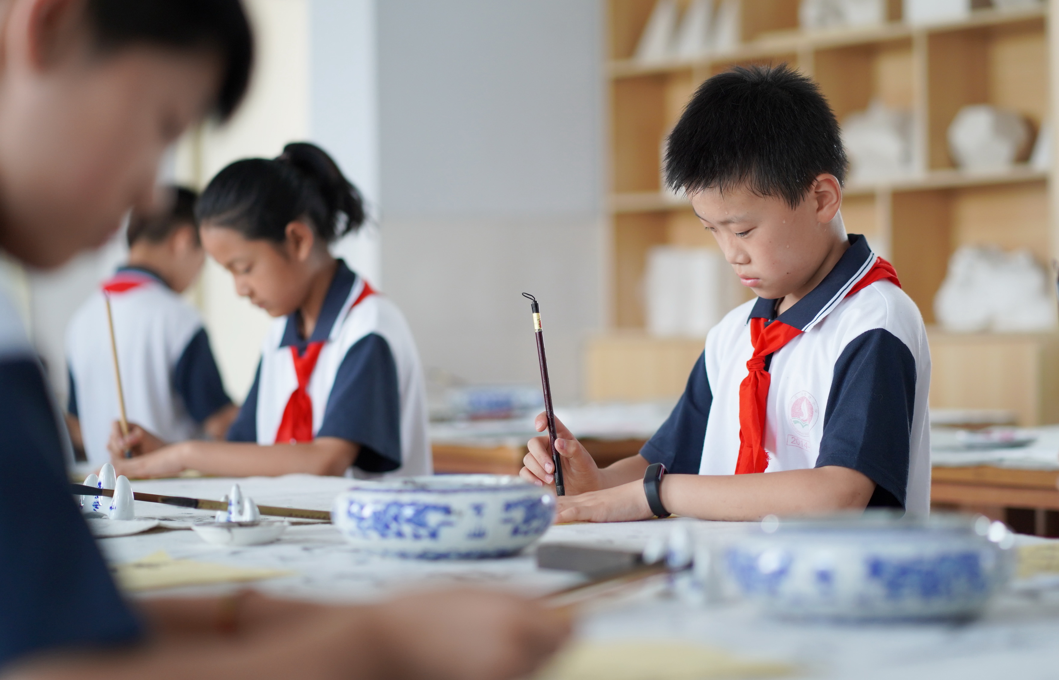 Students attend a calligraphy class at Neiqiu Experimental Primary School in Neiqiu County, north China's Hebei Province, June 26, 2019. (Xinhua/Zhu Xudong)