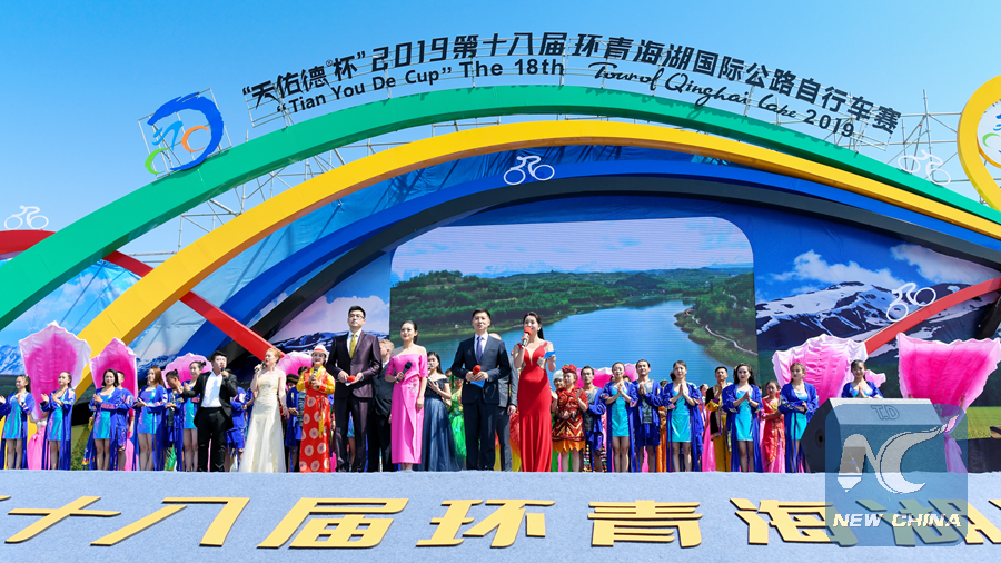 HAIDONG, China, July 13 (Xinhua) -- The 18th Tour of Qinghai Lake cycling race started in Haidong City, Qinghai Province on Saturday, with the participation of about 150 professional cyclists from 22 teams around the world.
