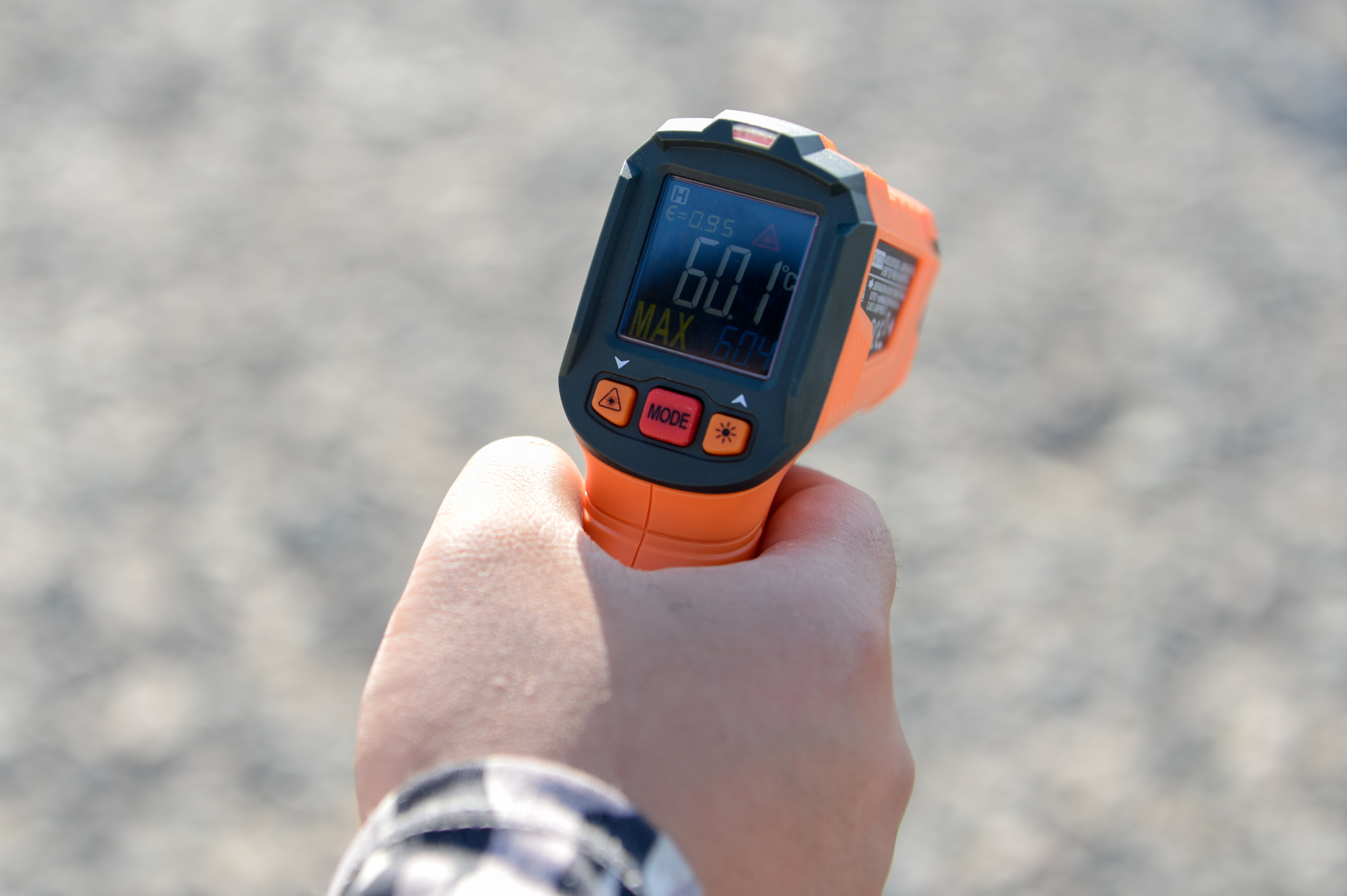 Inspector You Liwu tests the land surface temperature with an infrared thermometer at the Xinjiang Turpan Natural Environment Experimental Research Center in Turpan, northwest China's Xinjiang Uygur Autonomous Region, July 17, 2019. (Xinhua/Ding Lei)