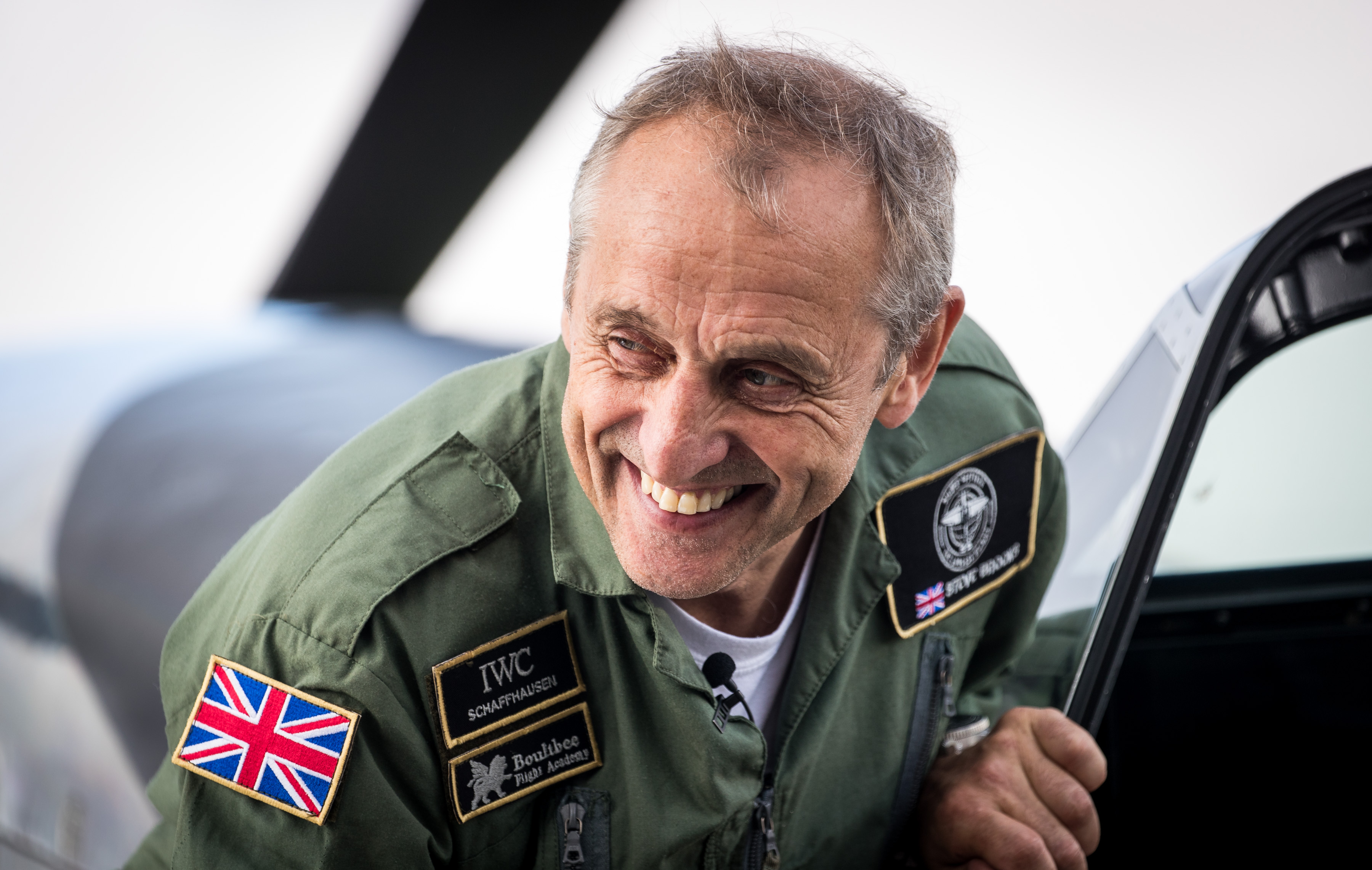 Photo provided by Goodwood shows Pilot Matt Jones ahead of the official start of the "Silver Spitfire - The Longest Flight" expedition in Goodwood, West Sussex, Britain, Aug. 5, 2019.(Photo by Remy Steiner/Getty Images for IWC/Handout via Xinhua)