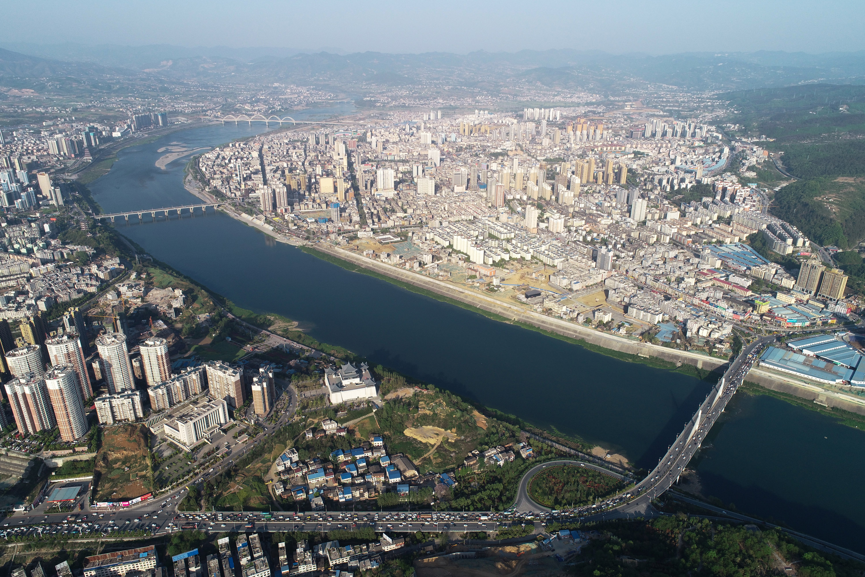 Hanjiang River winds through the city of Ankang, NW China's Shaanxi Province. (Xinhua/Shao Rui)