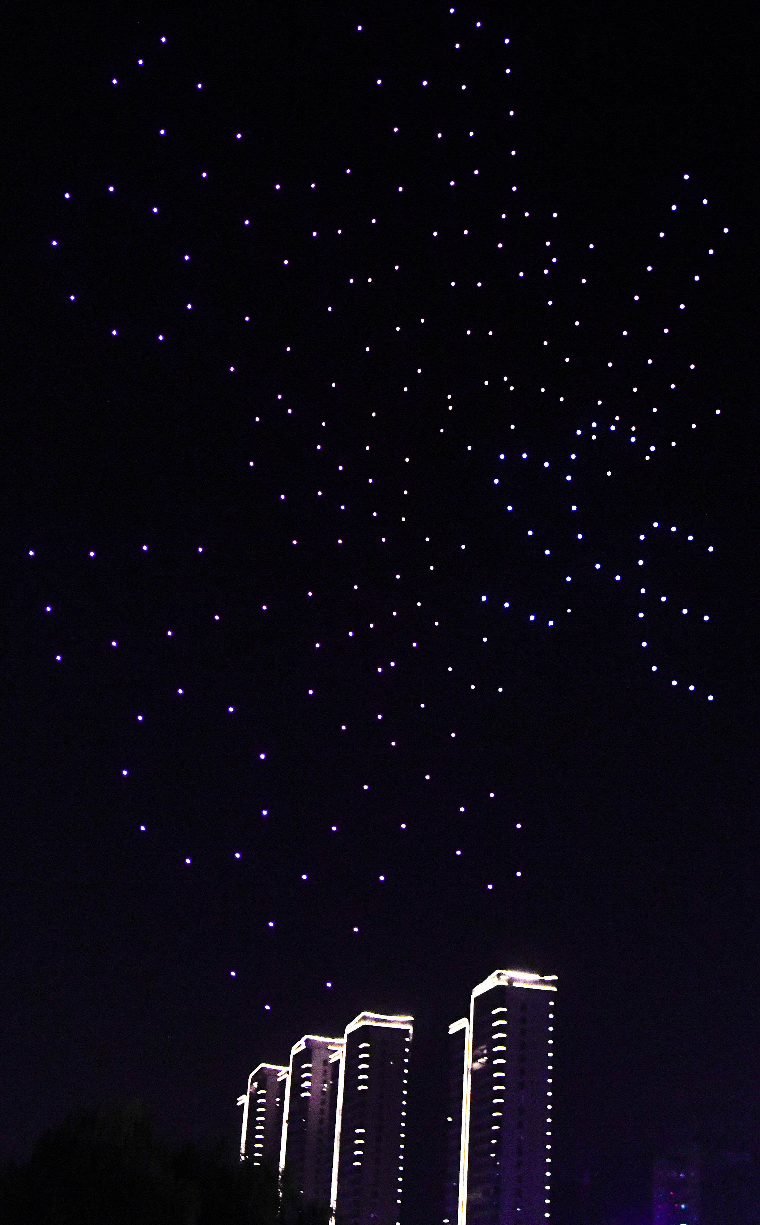 Drones make up a robot pattern during a drone light display in southwest China's Chongqing, Aug. 26, 2019. (Xinhua/Wang Quanchao)
