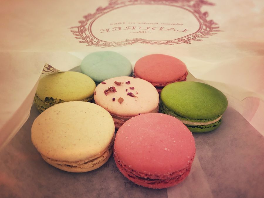 Macarons at a French macaron shop Laduree in Paris, France. (Xinhua/Gao Jing)