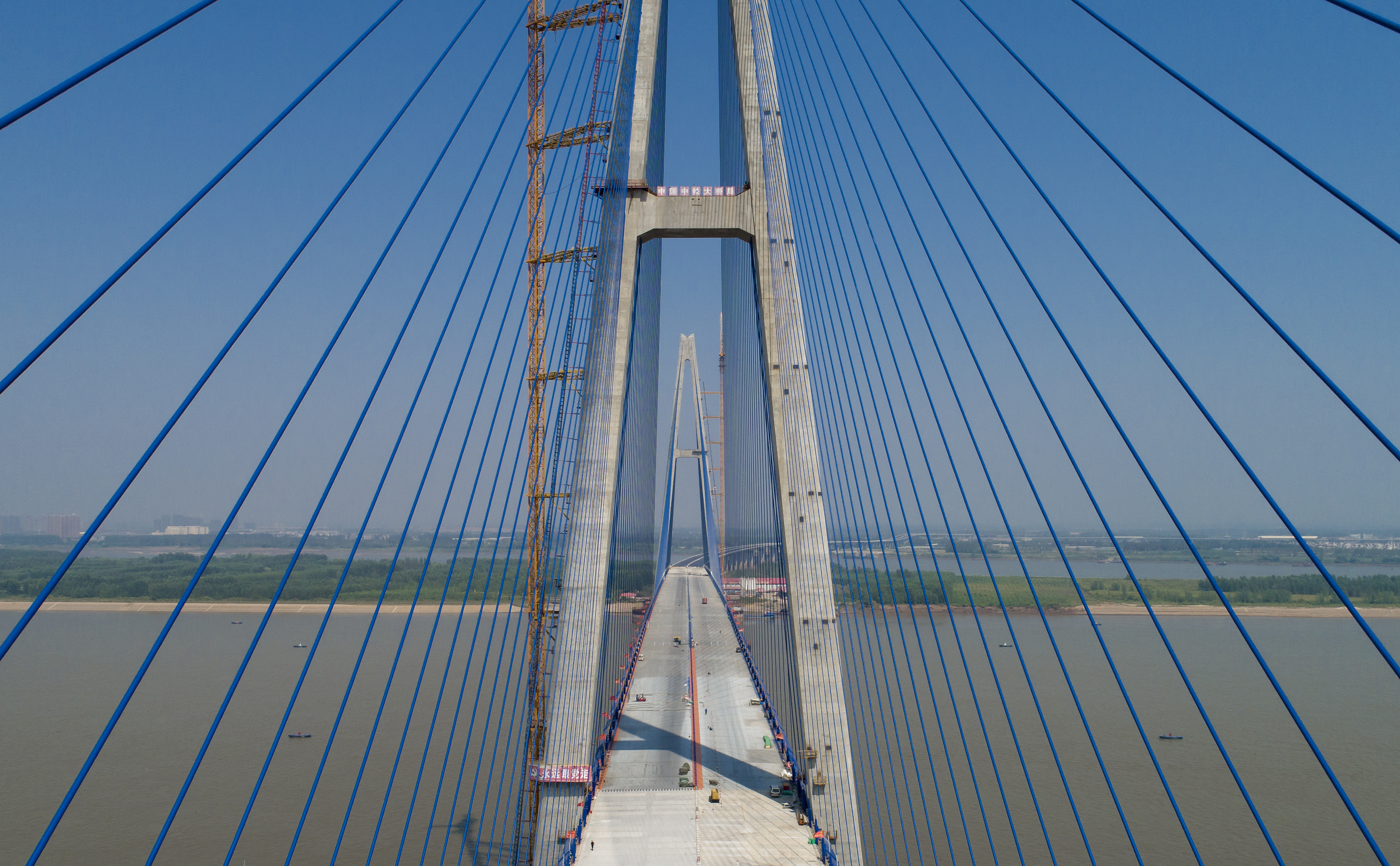 The bridge is expected to open to traffic next year and significantly improve the road network and logistics in Wuhan, an important transportation hub in central China.