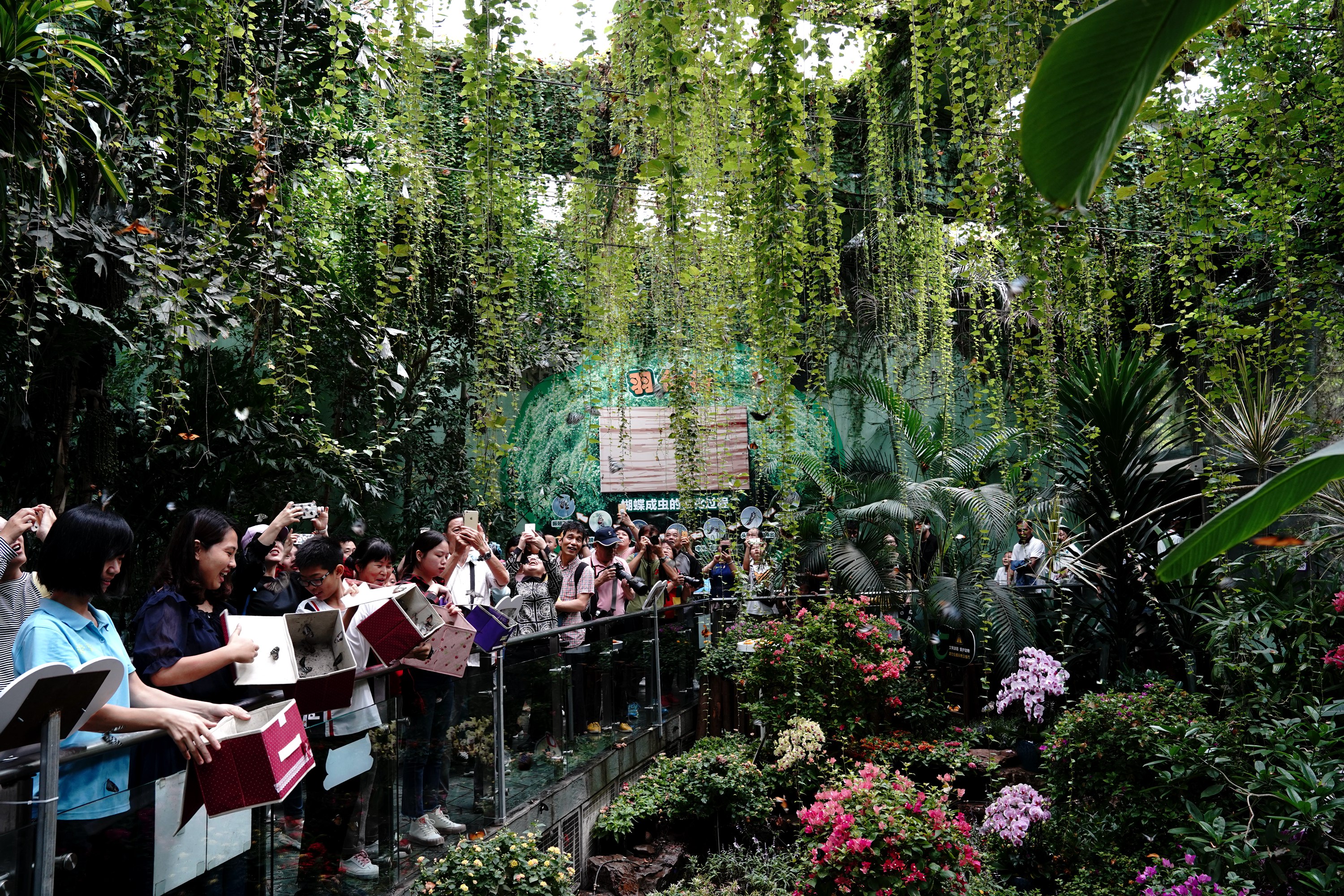 People take part in a butterfly releasing activity at Shanghai Zoo in east China's Shanghai, Oct. 2, 2019, the second day of the 7-day-long National Day holiday. (Xinhua/Zhang Jiansong)