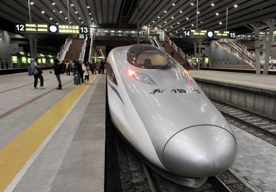 The G80 express train stops at the Beijing West Railway Station in Beijing, capital of China, Dec. 22, 2012. China is set to open the world's longest high-speed railway on Dec. 26, linking Beijing and the southern economic center of Guangzhou. (Xinhua/Chen Yehua)