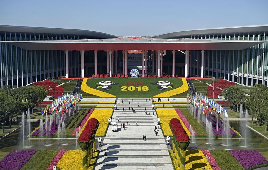 Photo taken on Nov. 9, 2019 shows the National Exhibition and Convention Center in Shanghai, east China, where the second China International Import Expo (CIIE) is held from Nov. 5 to Nov. 10. (Xinhua/Wang Peng)