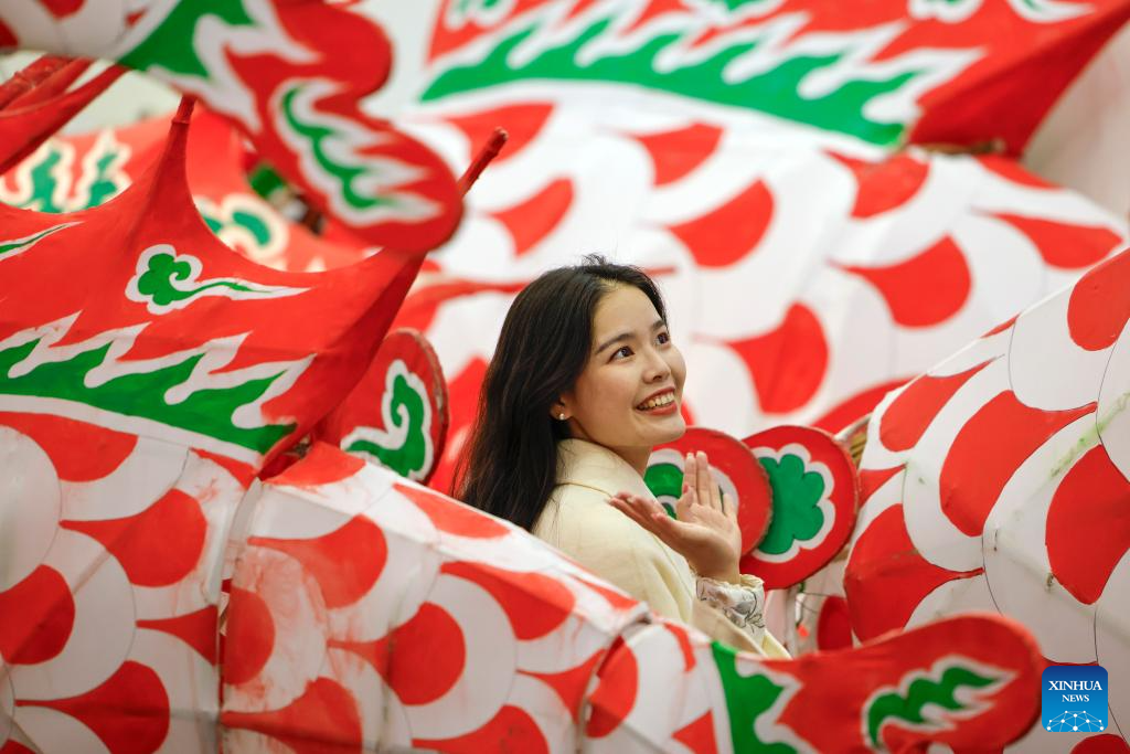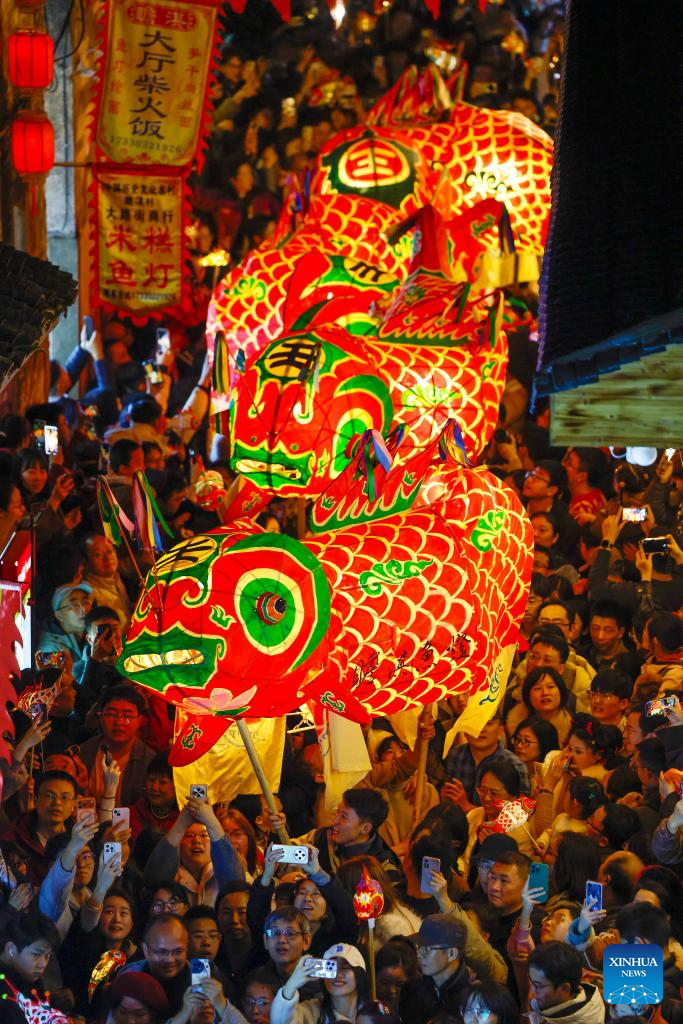 Nowadays, apart from parades with fish-shaped lanterns, local people have made efforts on developing new business forms related to the fish-shaped lantern including tourism and cultural and creative products. (Xinhua/Zhang Duan)