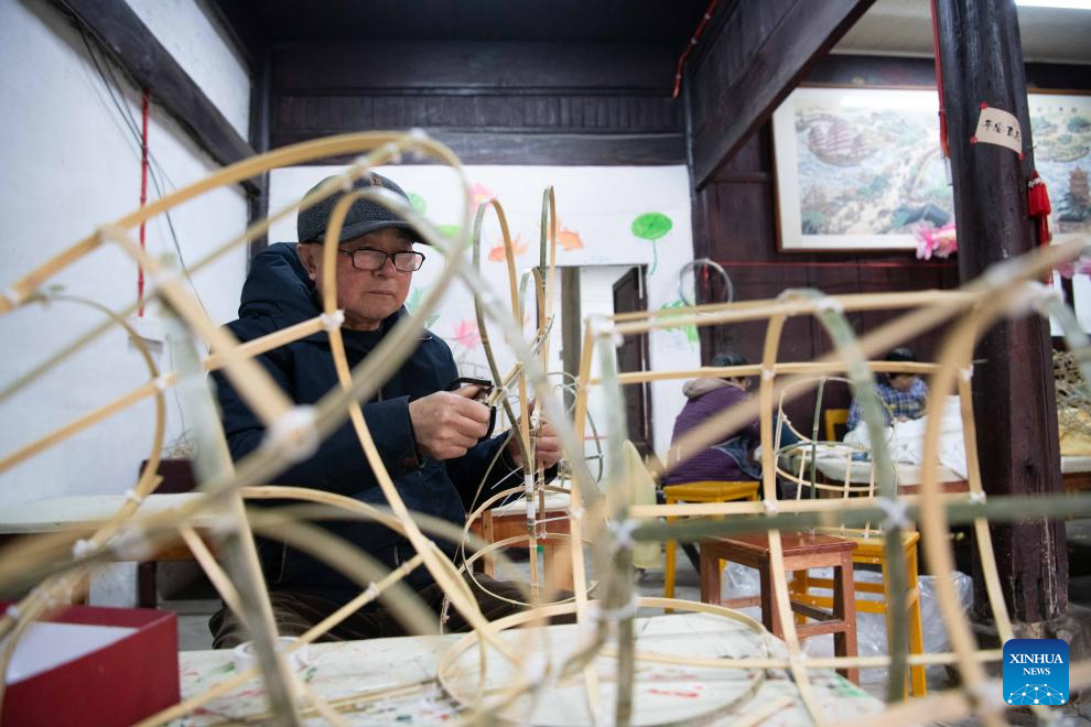 A craftsman makes a fish-shaped lantern in Zhanqi Village, Shexian County of Huangshan City, east China's Anhui Province, March 1, 2026. (Xinhua/Zhang Duan)