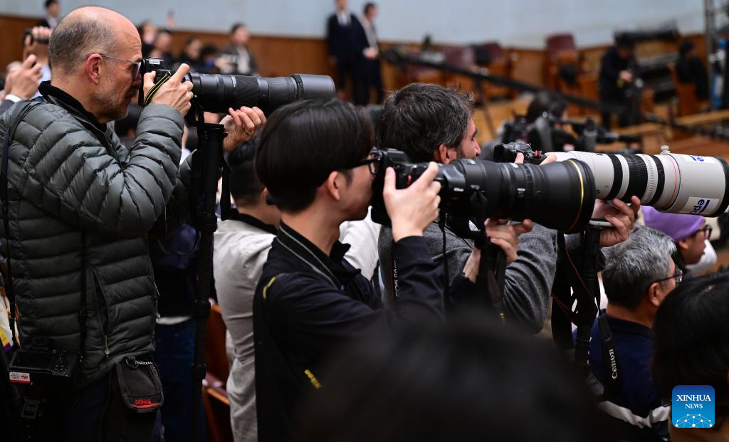 Journalists work at the opening meeting of the fourth session of the 14th Chinese People's Political Consultative Conference (CPPCC) National Committee at the Great Hall of the People in Beijing, capital of China, March 4, 2026. (Xinhua/Chen Yehua)
