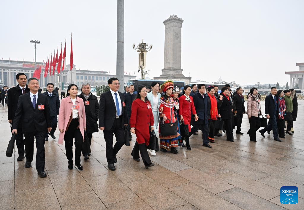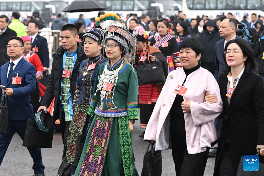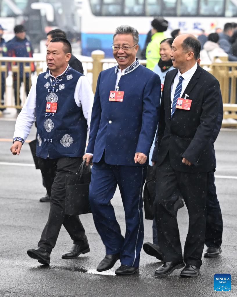 Deputies to the 14th National People's Congress (NPC) walk towards the Great Hall of the People for the opening meeting of the fourth session of the 14th NPC in Beijing, capital of China, March 5, 2026. (Xinhua/Cao Yiming)