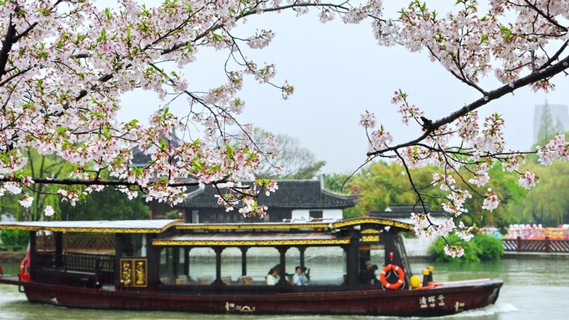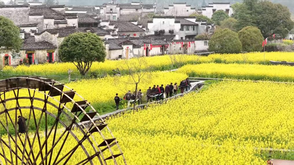 A drone photo taken on April 2, 2026 shows farmers working in the fields in Tianmen Town of Tongling, east China's Anhui Province. (Photo by Chu Zhuchuan/Xinhua)■