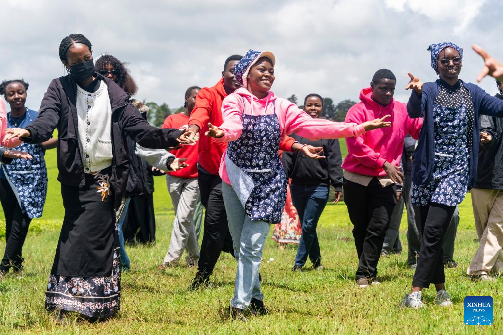 Students from the Confucius Institute at the University of Nairobi learn dancing at a tea garden in Kiambu County, Kenya, April 15, 2026.