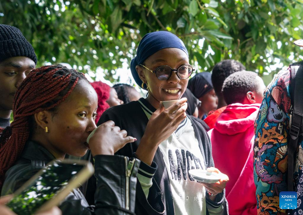 Students from the Confucius Institute at the University of Nairobi taste tea at a tea garden in Kiambu County, Kenya, April 15, 2026.