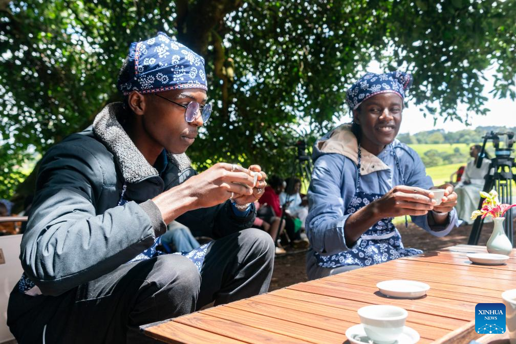Students from the Confucius Institute at the University of Nairobi taste tea and recite Chinese poetry at a tea garden in Kiambu County, Kenya, April 15, 2026.