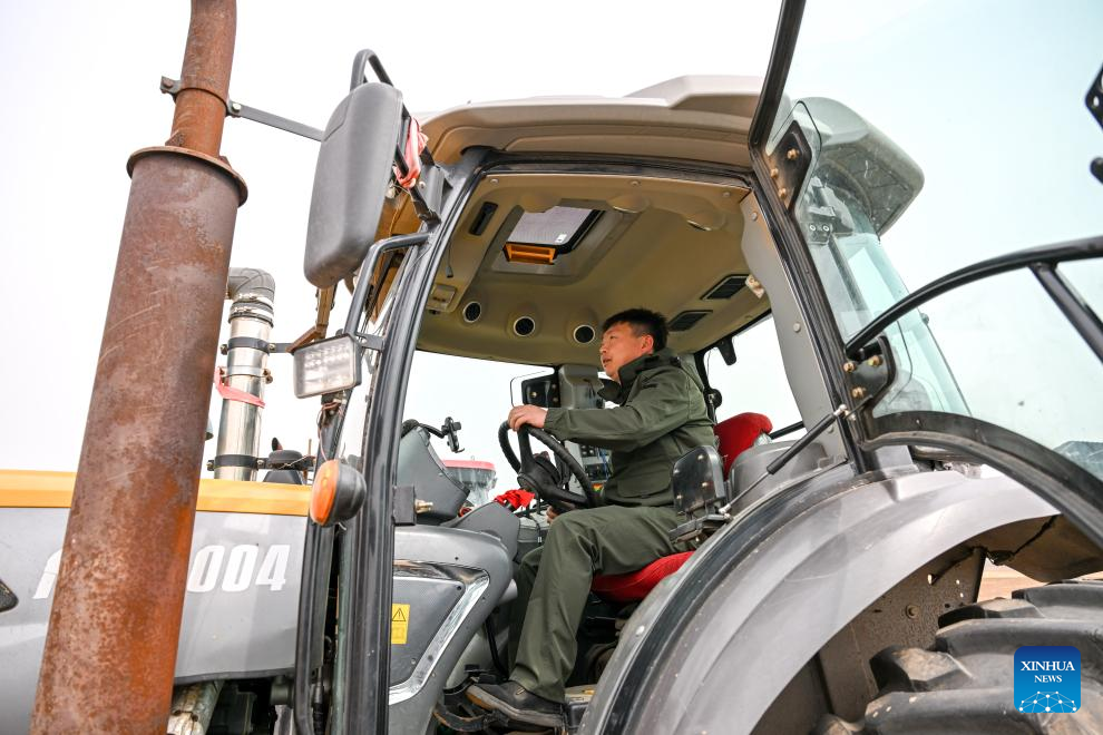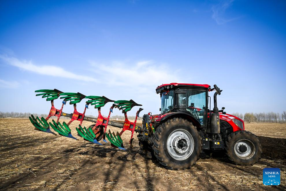 A farmer drives agricultural machinery to plough the fields in Horqin Left Wing Middle Banner of Tongliao City, north China's Inner Mongolia Autonomous Region, April 17, 2026. The ploughing work in Tongliao, a granary of eastern Inner Mongolia, is drawing to a close ahead of the peak period of corn sowing. It is learned that Tongliao's corn planting area in 2026 is expected to reach 20 million mu (1.33 million hectares). (Xinhua/Lian Zhen)