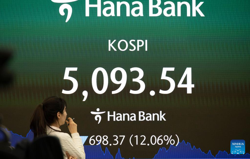 SEOUL, March 4 (Xinhua) -- South Korean stocks tumbled more than 12 percent on Wednesday amid circuit breakers, triggered by escalating Middle East conflict that led to panic selling for the second straight session.