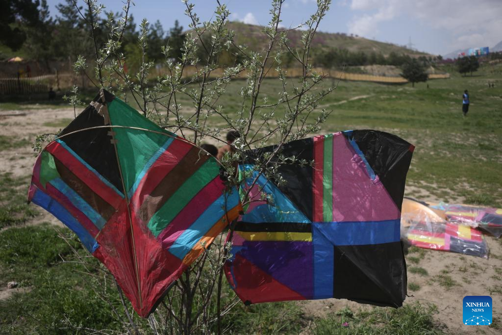 KABUL, April 17 (Xinhua) -- Impatiently waiting for his turn to run his colorful kite on a ground in Qarga locality outside the capital city Kabul, Mohammad Mahfoz Haroni whispered with emotion that since childhood he loves kite flying the kite almost every day.