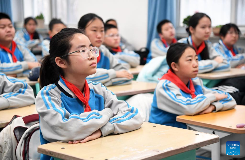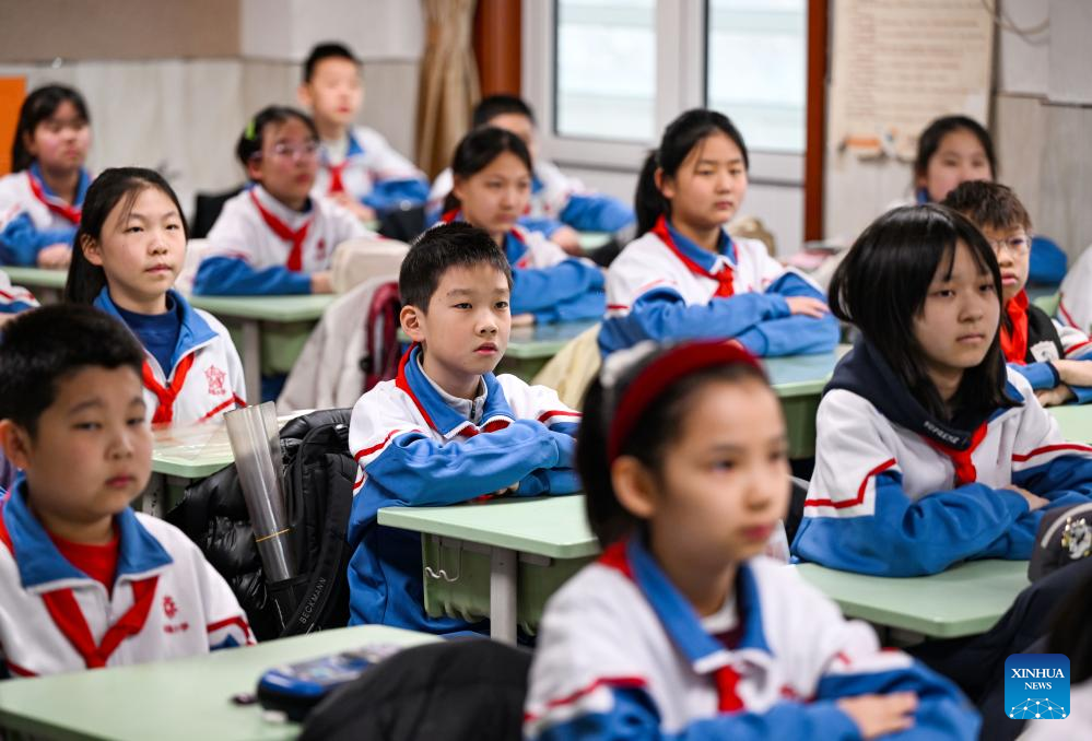 Students attend a class at a primary school in Heping District of Tianjin, north China, March 2, 2026. A new semester kicked off for primary and secondary schools as well as kindergartens in many parts of China on Monday. (Xinhua/Zhao Zishuo)