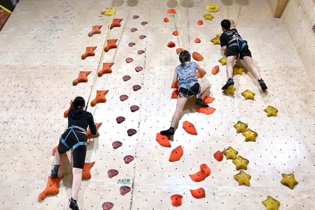 市民在成都体验攀岩运动