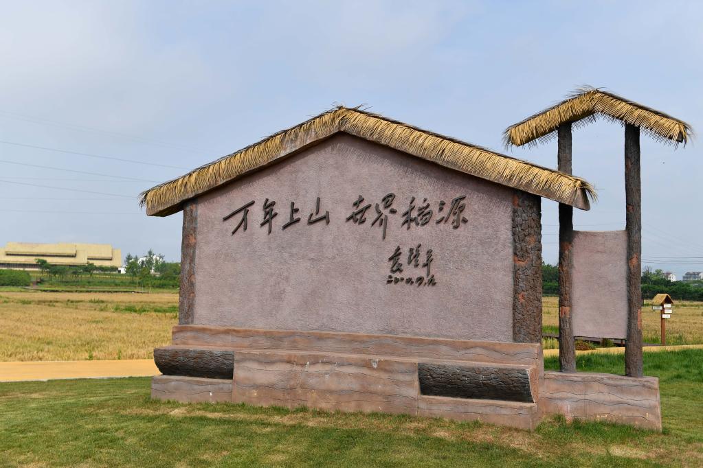 而在上山考古遺址公園的展廳里,觀眾可以看到袁隆平院士2020年4月9日的題詞——“萬(wàn)年上山 世界稻源”。