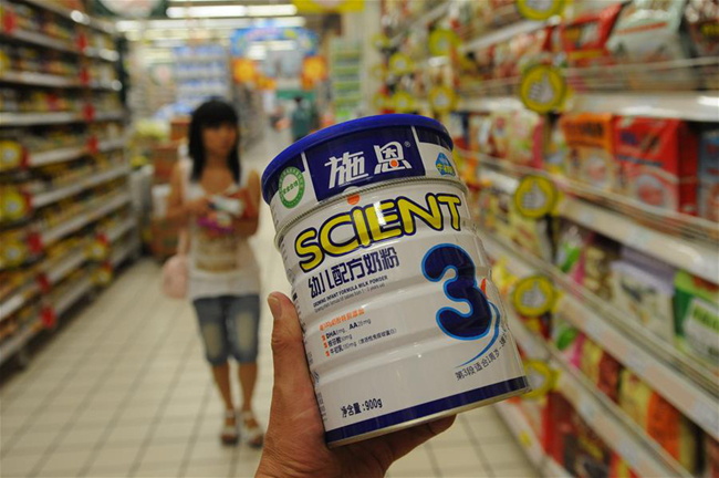 一超市里销售的奶粉。(图片来源:视觉中国)