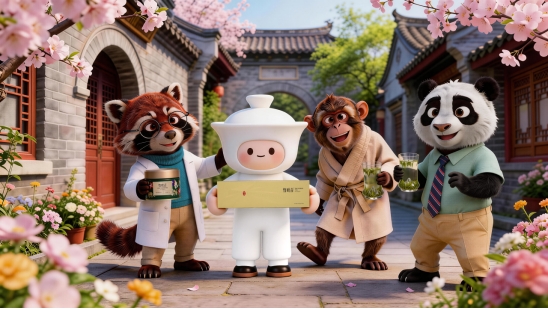 而在AI从“云端”跑进“人间”的这一年,竹叶青不仅以AI赋能品控,更以AI讲述茶文化故事。在春晚《贺花神》、机器人天坛秀中国功夫的跨界热潮中,春茶上市之际,竹叶青正式发布首支AI创意品质大片《盖碗哥寻鲜记》。影片以吉祥物“盖碗哥”的视角,带领观众走进峨眉茶山、探访智能工厂,会面挚友大熊猫、制茶大师小熊猫、茶农峨眉灵猴等一众“四川原住民朋友”。这群活灵活现的“四川名片”代言人,均由AI生成,却生动传递着春茶的鲜爽本真与地道的川茶文化。从山野到车间,从传统到现代,盖碗哥用一趟寻鲜之旅,让观众看见一杯好茶背后的山川故事与科技匠心。