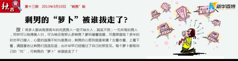 @稻草人:你嫁,或者不嫁人;你媽總在那里,忽悲忽喜;你剩,或者不剩下,青春總在那里,不來(lái)只去;你挑,或者不挑剔;貨就那么幾個(gè),不增只減;你認(rèn),或者不認(rèn)命;愛(ài)情總得忘記,不舍也棄;來(lái)剩男的懷里,或者,讓剩男住進(jìn)你心里。