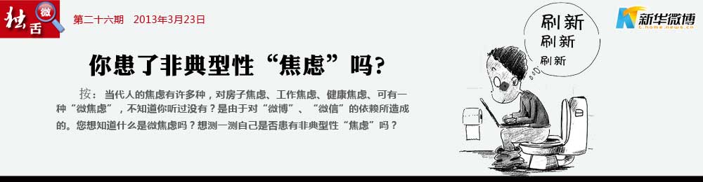 親,你出現“微焦慮”癥狀了嗎? 不“織圍脖”、不接發(fā)微信就寢食難安,出現焦慮、依賴、強迫等心理問題。這就是患上了微博焦慮癥,簡稱為“微焦慮”。