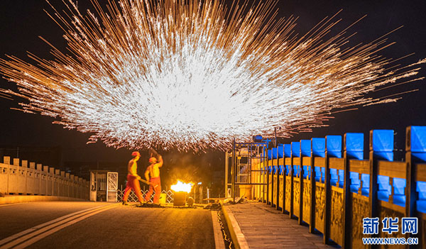 窑湾非遗表演“打铁花”(摄影:贾传军,拍摄地:江苏省徐州市新沂市窑湾古镇)