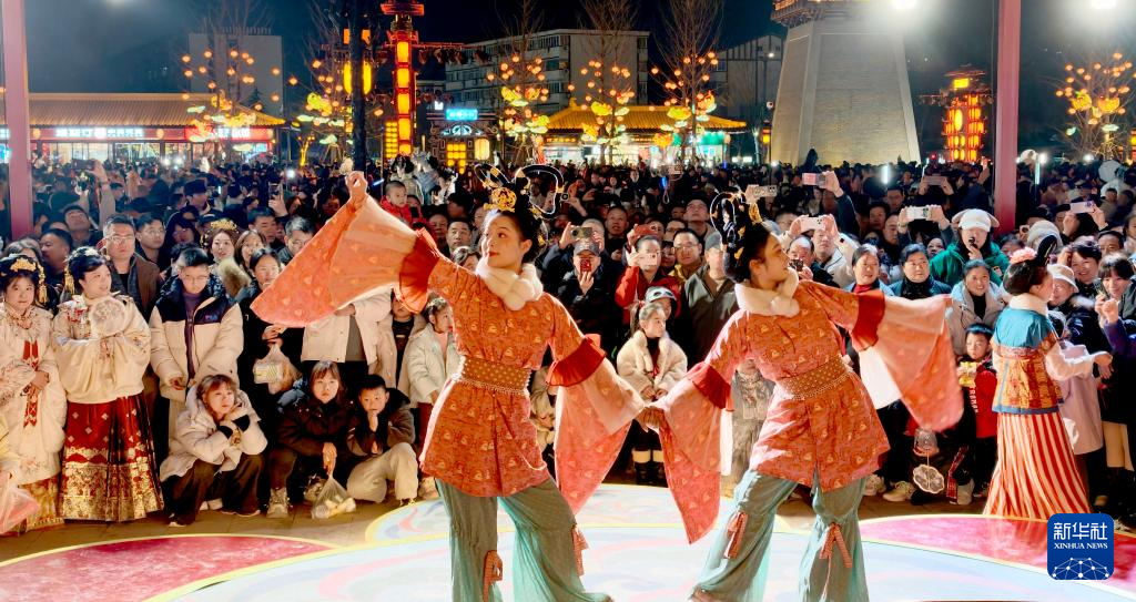 2月18日晚,演员在河南省洛阳市隋唐洛阳城应天门南广场表演。