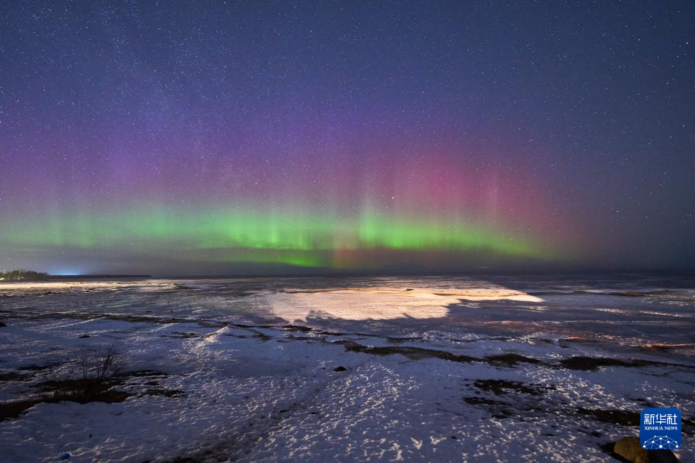 这是3月20日在俄罗斯圣彼得堡附近的拉多加湖拍摄的极光。