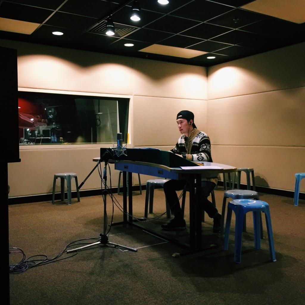 孫中文的工作時(shí)間幾乎都是在配音間度過(guò)的。(受訪者提供)