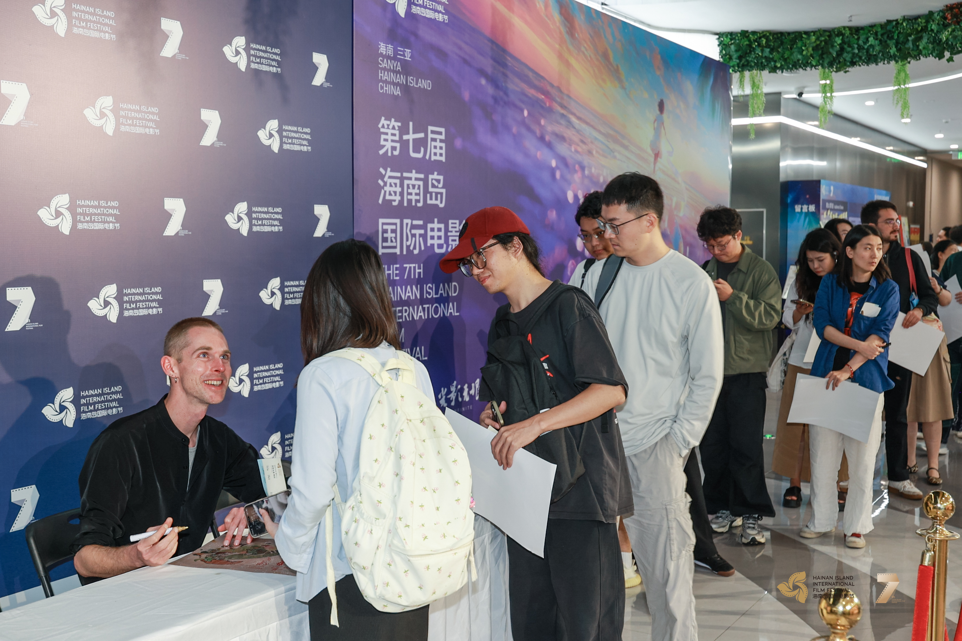 获得第七届海南岛国际电影节“金椰奖”最佳纪录片奖的《发纸水谣》导演尼古拉斯·格劳为观众签名(海南岛国际电影节供图)