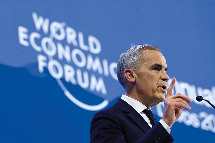 2026年1月20 日,加拿大总理卡尼在瑞士达沃斯举行的世界经济论坛2026年年会上发表演讲,批评美国政策导致全球关系破裂