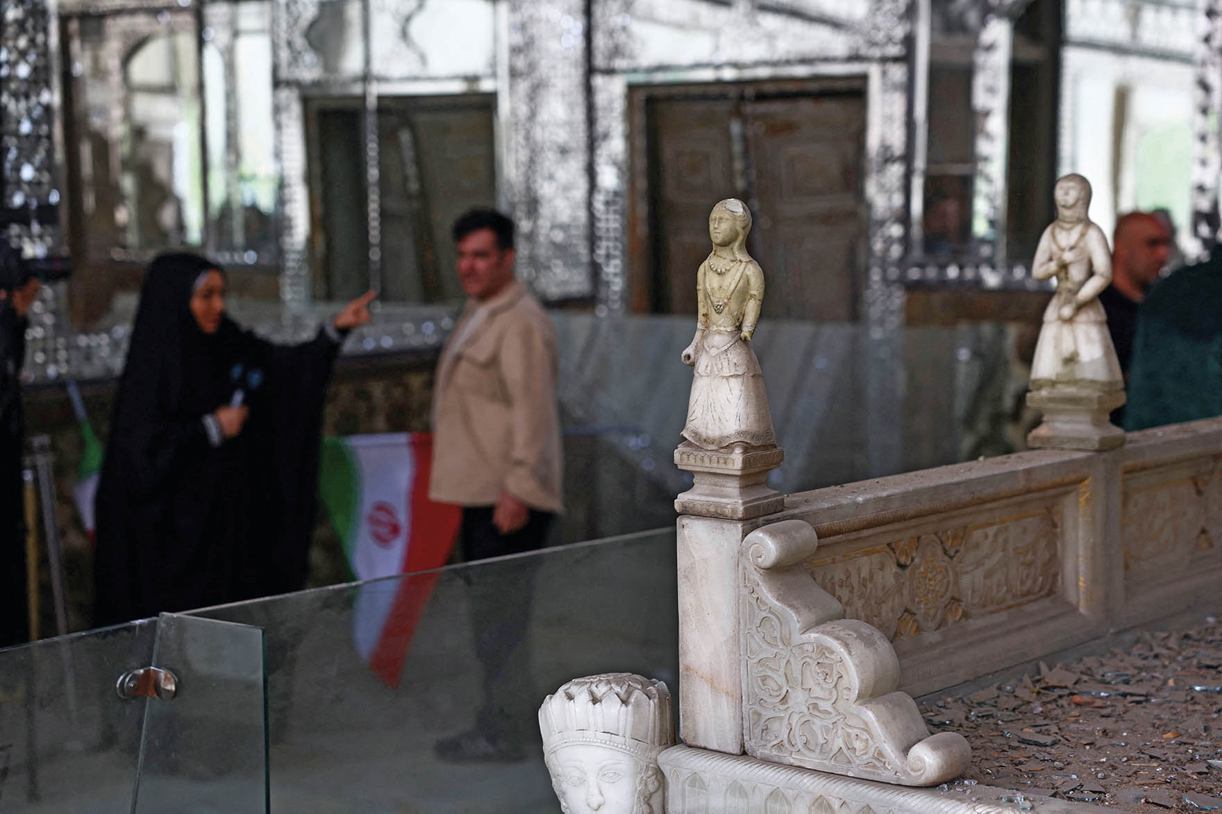 位于伊朗首都德黑兰的联合国教科文组织世界遗产地古莱斯坦宫(又称“玫瑰宫”)日前在空袭中受到爆炸冲击波影响而受损。图为2026年4月4日,人们在德黑兰参观受损的古莱斯坦宫