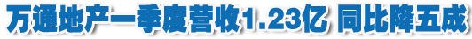 地產“淡定哥”一季度不再淡定,凈利潤出現(xiàn)虧損1860萬元。對于住宅項目主要以中高端為主的萬通地產而言,2012年的壓力依然很大。據了解,萬通目前在內地的住宅產品主要位于北京及周邊地區(qū)、天津、成都等地,均是中高端產品,是調控的“重災區(qū)”。如去年年中開盤的萬通天竺家園就被迫限價,影響了預期利潤。而臺北萬通項目尚未形成利潤。 …[詳細] |
