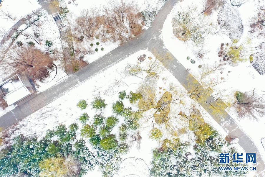 這是3月1日拍攝的山西平遙古城南門(mén)外迎薰公園一角(無(wú)人機(jī)照片)。新華社發(fā)(梁生仁 攝)