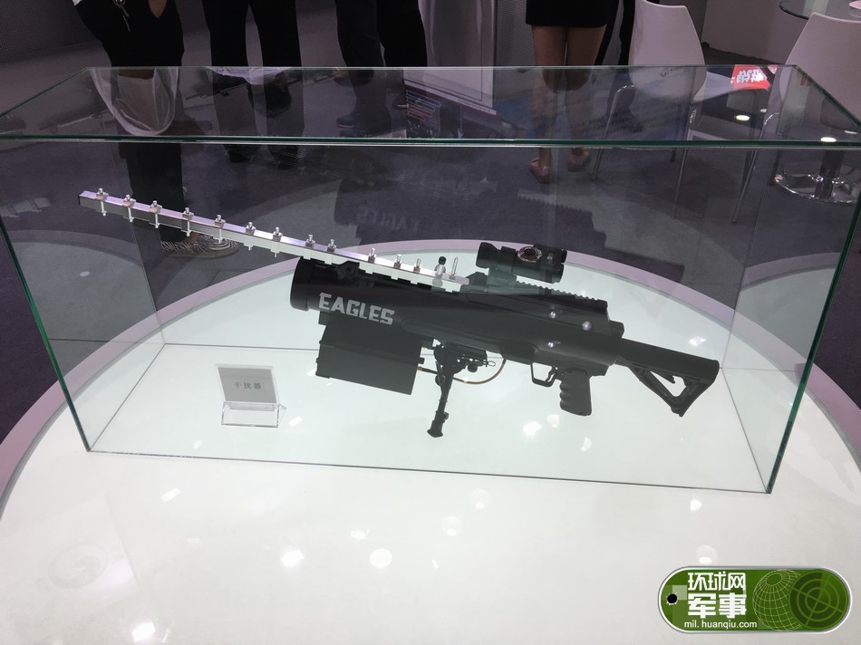 ????第八屆中國國際警用裝備博覽會(huì)于2016年5月17日至20日在北京國家會(huì)議中心舉行,各類警用裝備齊聚亮相。在一家展商的展臺(tái)上,擺著一具無人機(jī)干擾器。從外觀上看,這款裝備有點(diǎn)像電鋸。