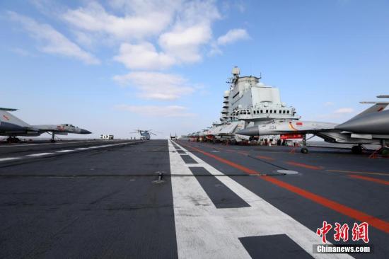 中國海軍航母編隊在南海組織艦載機起降訓(xùn)練