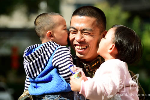????中隊(duì)長曾云強(qiáng)回顧軍嫂在隊(duì)期間,幽默地說:兩個大人相當(dāng)于給部隊(duì)增加了兩名后勤尖兵,營區(qū)更干凈了,飯菜更美味了;兩個寶寶更像給官兵增加了兩顆“開心果”,14個小時(shí)高負(fù)荷勤務(wù)歸來,寶寶一聲“叔叔辛苦了!”,誰都忍不住上前抱一抱、逗一逗、鬧一鬧,其樂融融。