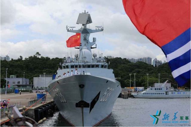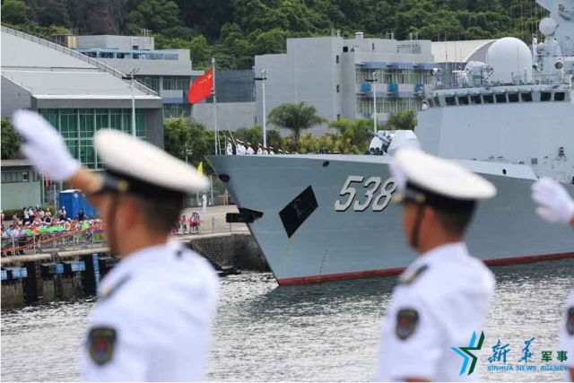 ↑7月7日,海軍濟南艦緩緩駛?cè)胂愀郯捍薮a頭。新華社記者 曾濤 攝