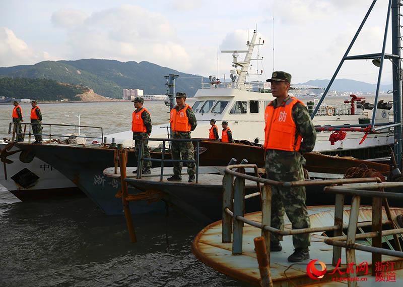 邊防官兵看守“油船”。