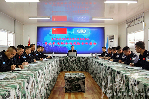 圖為中國第五支駐利比里亞維和警察防暴隊召開專題會議,反復(fù)研究勤務(wù)方案,部署任務(wù)。