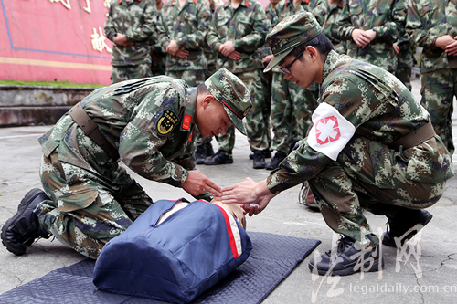 圖為官兵實(shí)操學(xué)習(xí)心肺復(fù)蘇