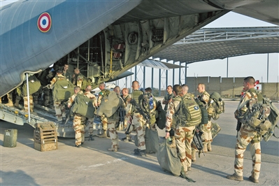 ????參加“藪貓行動(dòng)”的“食雀鷹部隊(duì)”士兵登機(jī)前往馬里