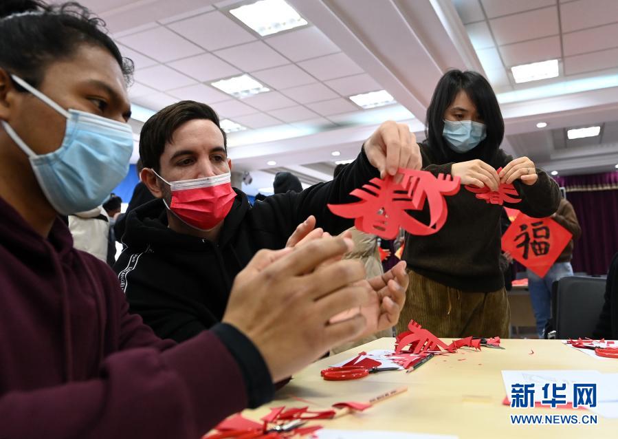 當日,天津大學通過舉辦“暖心”活動,為寒假留校的部分中外學生拍攝賀歲寫真、教寫福字、剪窗花等,讓大家歡喜過小年。