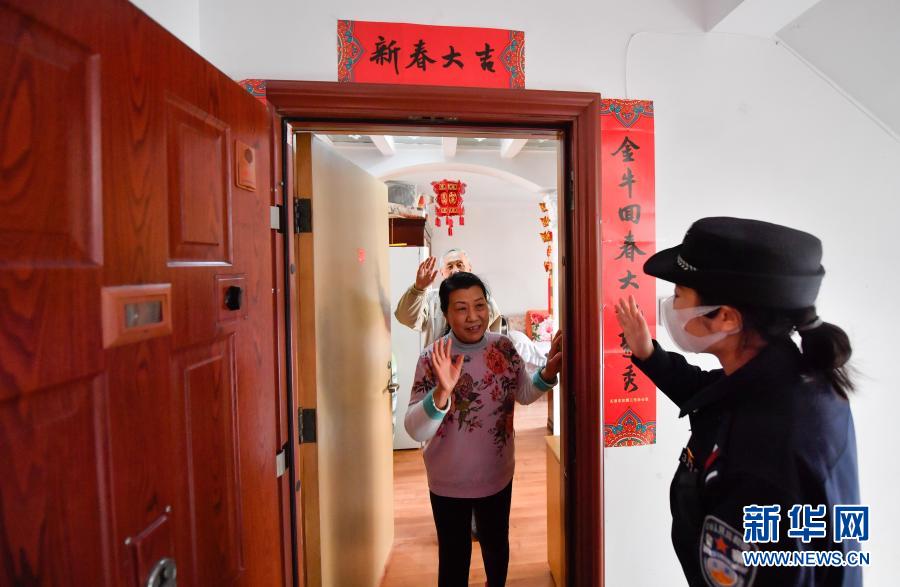 2月11日,在天津市紅橋區(qū)隆春里社區(qū)結(jié)束入戶走訪后,楊曉惠(右)和居民告別。新華社發(fā)(孫凡越攝)